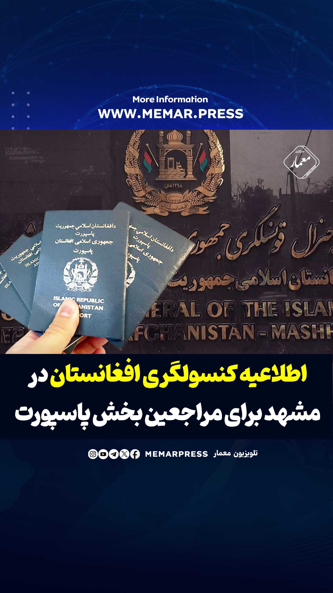 اطلاعیه کنسولگری افغانستان در مشهد برای مراجعین بخش پاسپورت الکترونیک