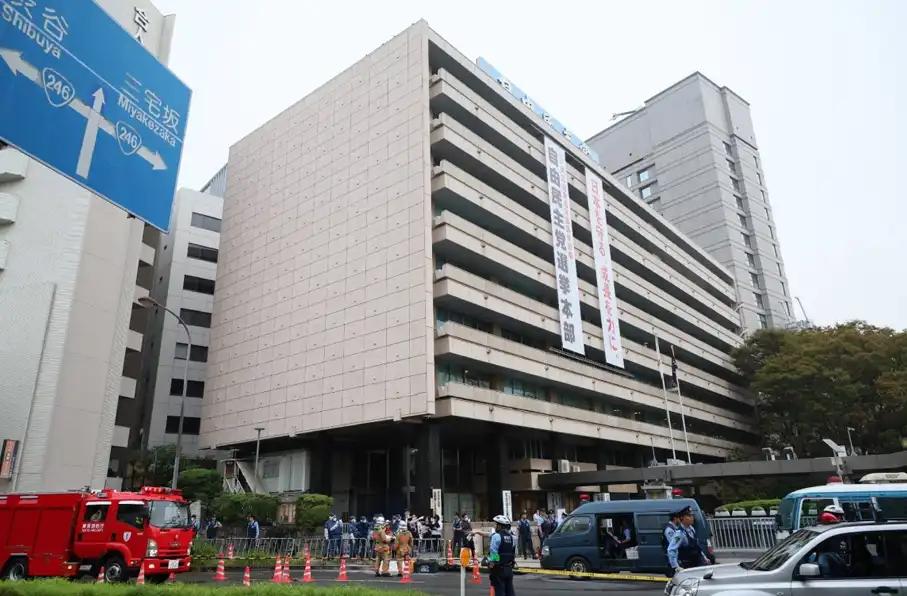 کیودو گزارش داد:یک فرد اشیایی که گمان می رفت کوکتل مولوتف باشد را به سوی مقر حزب حاکم جاپان پرتاب و با یک دستگاه ون به موانع مقابل دفتر نخست وزیر این کشور برخورد کرد.