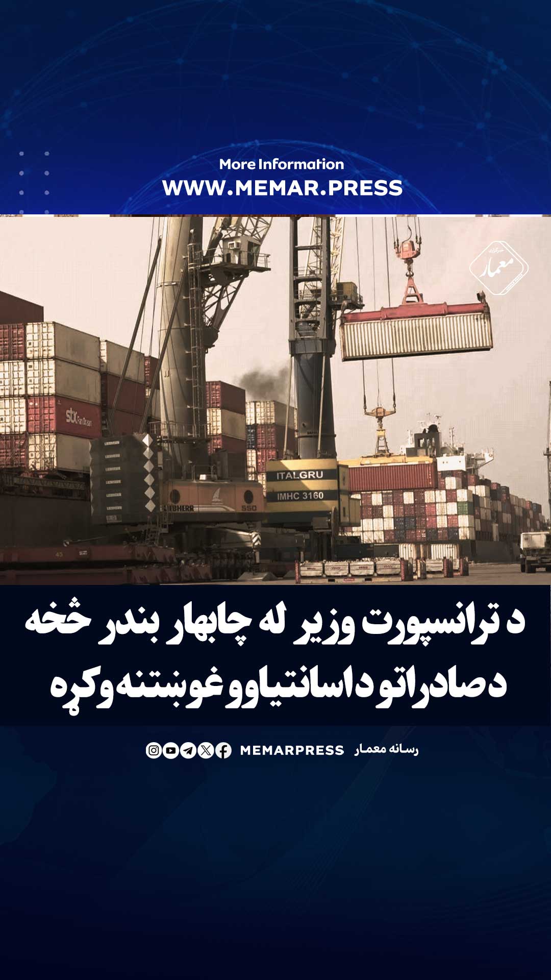 د ترانسپورت وزیر له چابهار بندر څخه د صادراتو د اسانتیاوو غوښتنه وکړه 53 لینک کوتاه: https://memar.press/?p=103547 منتشر شده در 5:10 ب.ظ شماره خبر 103547 17 میزان 1403 آخرین بروزرسانی 17:34 - 17 میزان 1403 Facebook Twitter WhatsApp Telegram Email مطالب مرتبط سفیر ایران در کابل: روابط مرزی ایران و افغانستان گسترش می یابد 24 حمل 1404 خطر اخراج ۱۴ هزار پناهجوی افغان از آمریکا 23 حمل 1404 نشست مشترک اقتصادی افغانستان و ایران در کابل 21 حمل 1404 طالبان نشر تصاویر و ویدیوهای زندهجان را در بدخشان و جوزجان ممنوع کردند 21 حمل 1404