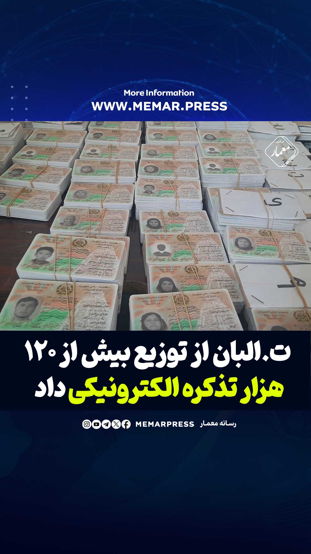 طالبان از توزیع بیش از ۱۲۰ هزار تذکره الکترونیکی در ماه سرطان خبر داد 56 لینک کوتاه: https://memar.press/?p=92525 منتشر شده در 7:00 ب.ظ شماره خبر 92525 8 اسد 1403 بیشتر بخوانید: اداره احصائیه از تشکیل کمیتهای ویژه برای بهبود روند خدمات تذکره خبر داد تذکره الکترونیکی آخرین بروزرسانی 01:50 - 16 میزان 1404 Facebook Twitter WhatsApp Telegram Email مطالب مرتبط سفیر ایران در کابل: روابط مرزی ایران و افغانستان گسترش می یابد 24 حمل 1404 خطر اخراج ۱۴ هزار پناهجوی افغان از آمریکا 23 حمل 1404 نشست مشترک اقتصادی افغانستان و ایران در کابل 21 حمل 1404 طالبان نشر تصاویر و ویدیوهای زندهجان را در بدخشان و جوزجان ممنوع کردند 21 حمل 1404