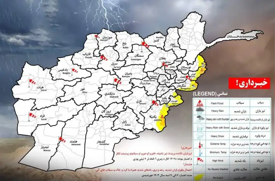 با توجه به بارندگیهای اخیر و خسارات ناشی از سیلاب در برخی مناطق کشور، مقامات طالبان از مردم ساکن در مناطق در معرض خطر خواستهاند تا اقدامات احتیاطی لازم را انجام دهند و از قرار گرفتن در مناطق پرخطر خودداری کنند.