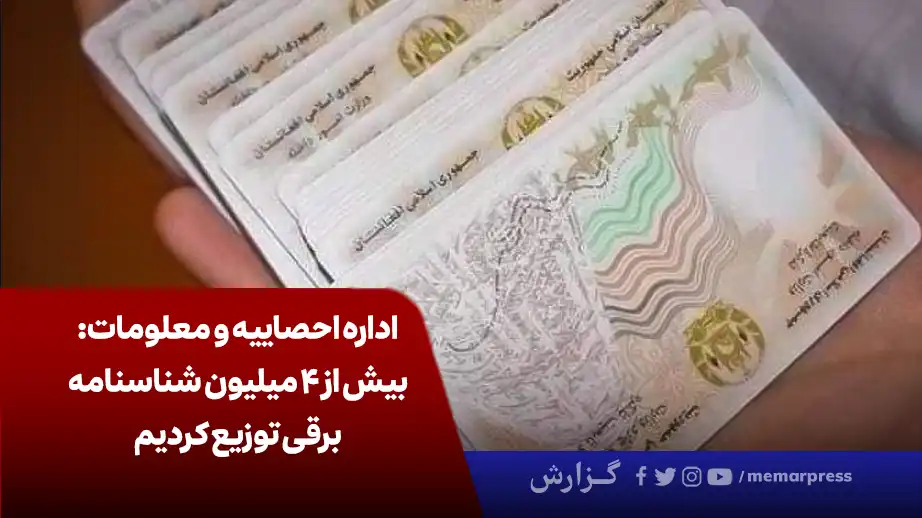 به گزارش خبرگزاری معمار، فقیر محمد زیار، سرپرست ریاست اداره ملی احصاییه و معلومات حکومت در برنامه «حسابدهی دولت به ملت» گفت که این اداره در یک سال گذشته، برای بیش از ۲.۵ میلیون نفر در سراسر کشور تذکره برقی توزیع کرده است.