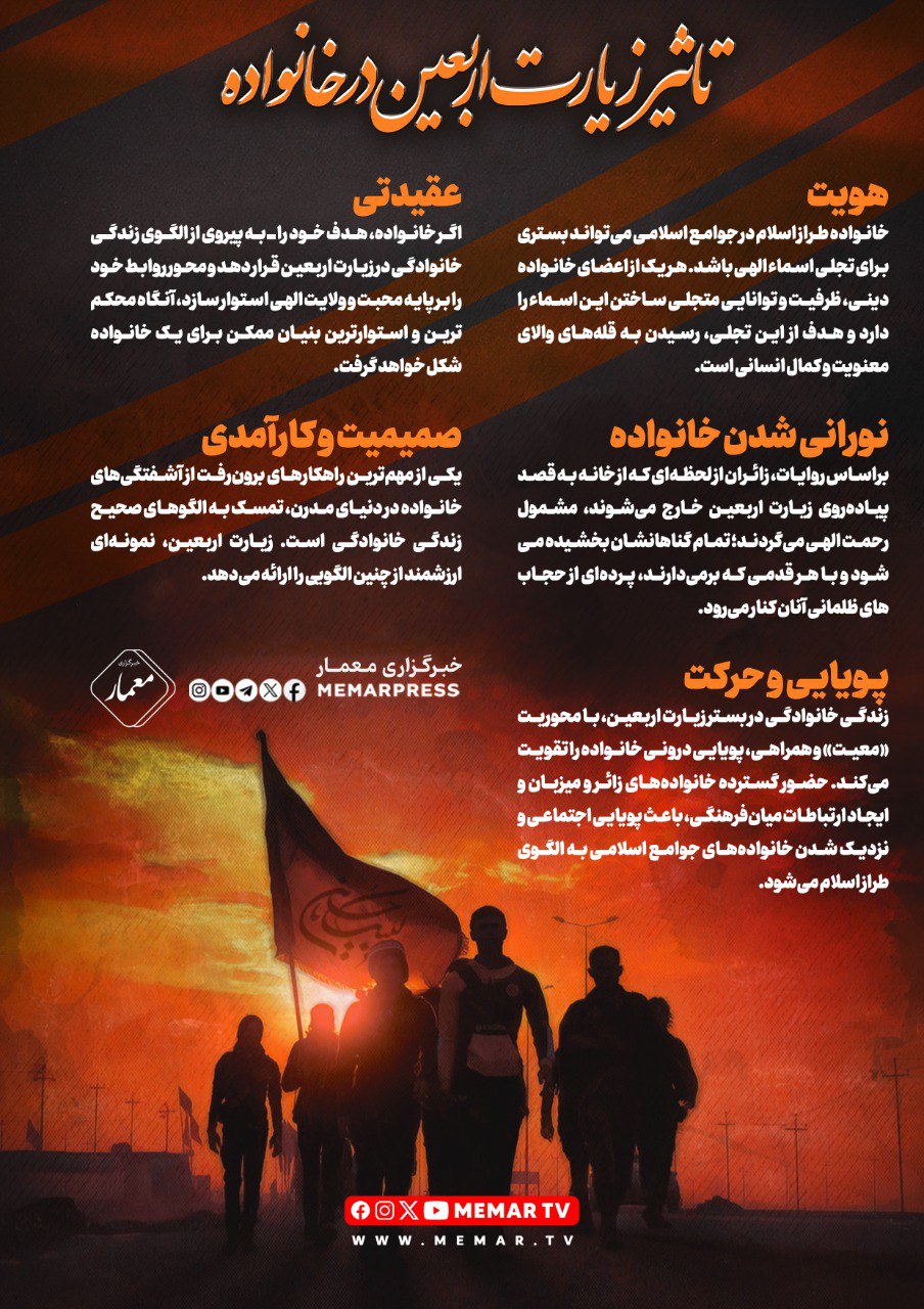 - پویایی و حرکت جمعی : اربعین، خانواده را از سکون به حرکت میکشاند؛ به سوی رشد، تحول و مشارکت اجتماعی.