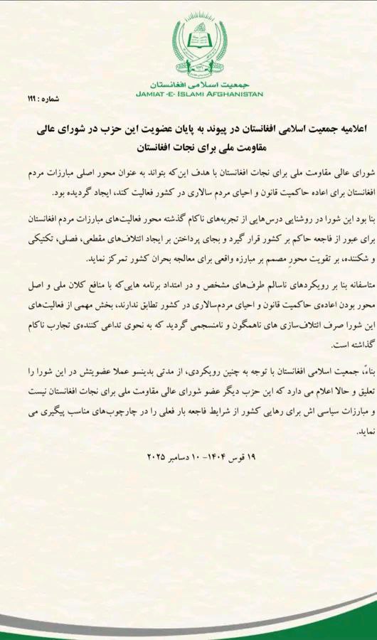 جدایی جمعیت اسلامی از این شورا، نشانهای از شکافهای داخلی میان مخالفان طالبان و پیچیدهتر شدن معادلات سیاسی در خارج از کشور تلقی میشود. این تصمیم میتواند بر انسجام و توانایی جریانات سیاسی برای ایجاد یک صف متحد در برابر طالبان تأثیر منفی بگذارد.
