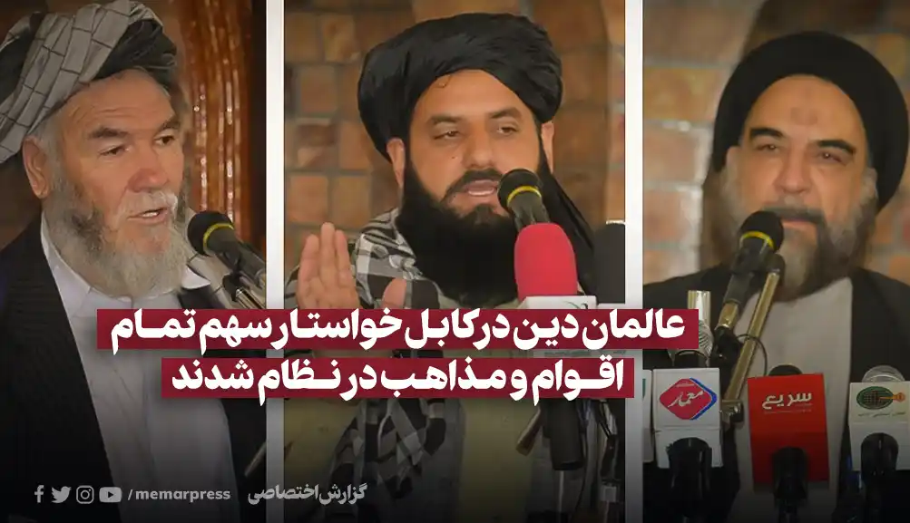 علما و متنفذین ناحیه ششم شهر کابل میگویند که در یک نظام اسلامی باید تمام اقوام و مذاهب سهم مساویانه داشته باشند زیرا بقای یک نظام اسلامی در گرو مردم است.