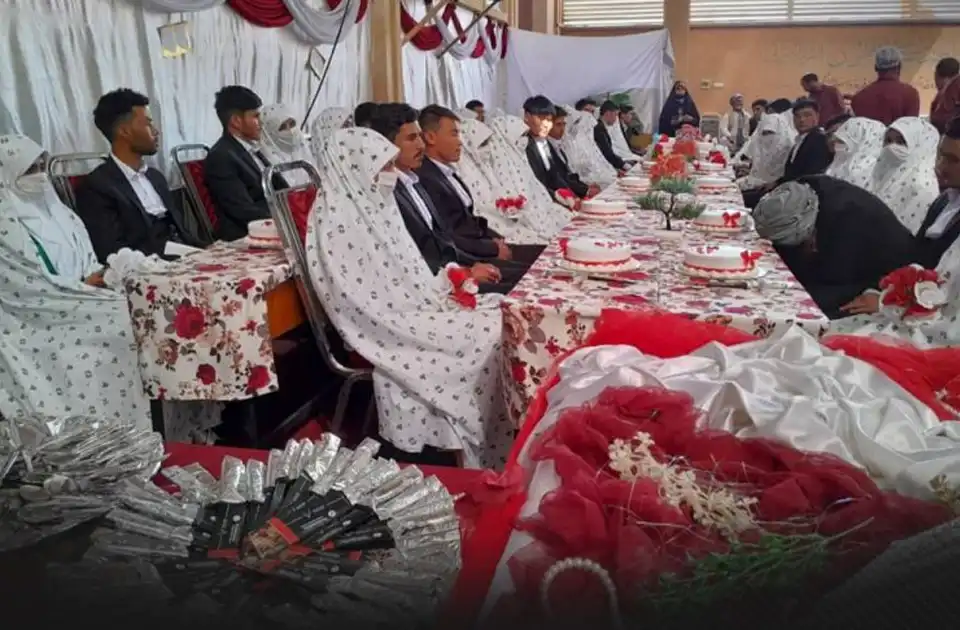 مراسم عروسی ۱۲۵ زوج (پنجشنبه، ۶ میزان) در شهر مزارشریف، مرکز ولایت بلخ بهگونهی دستهجمعی برگزار شد.