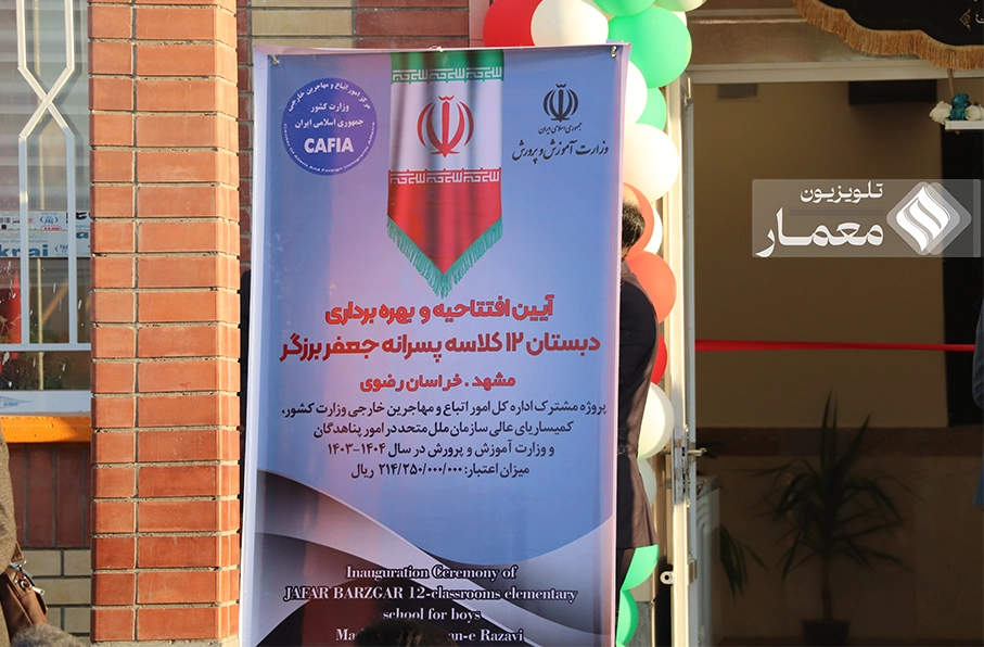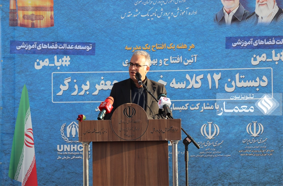 به گزارش خبرگزاری معمار؛ دبستان ۱۲ کلاسه “جعفر برزگر” در حاشیه شهر مشهد با حضور استاندار خراسان رضوی، رئیس دفتر کمیساریای عالی سازمان ملل در اموز پناهندگان، مدیرکل امور اتباع و مهاجرین خارجی خراسان رضوی و مدیرکل اداره آموزش و پرورش خراسانرضوی افتتاح شد.
