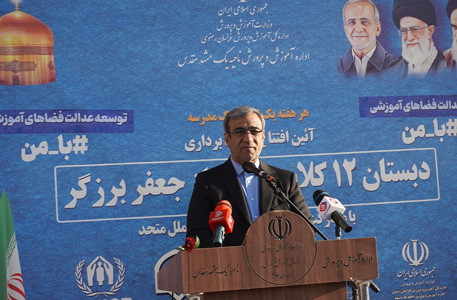 استاندار خراسان رضوی در این مراسم اعلام کرد که اجرای پویش ساخت فضاهای آموزشی، زمینه افتتاح بیش از ۳۰۰ مدرسه جدید در مهر امسال را در استان فراهم کرده است.
