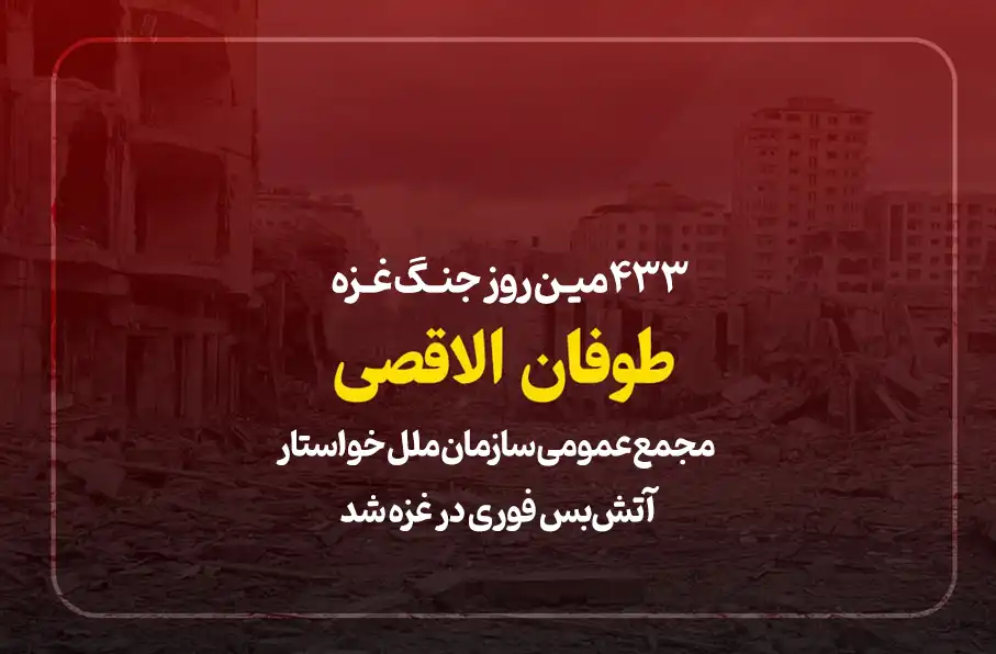 جنگ نسلکشی در غزه و ادامه جنایتگری رژیم صهیونیستی علیه فلسطینیان درحالی امروز (پنجشنبه) وارد ۴٣٣ مین روز خود شده است که مجمع عمومی سازمان ملل با اکثریت قاطع در دو قطعنامه خواستار توقف فوری جنگ و همچنین حمایت از فعالیتهای سازمان امدادرسانی و کاریابی برای آوارگان فلسطینی (آنروا) شد.