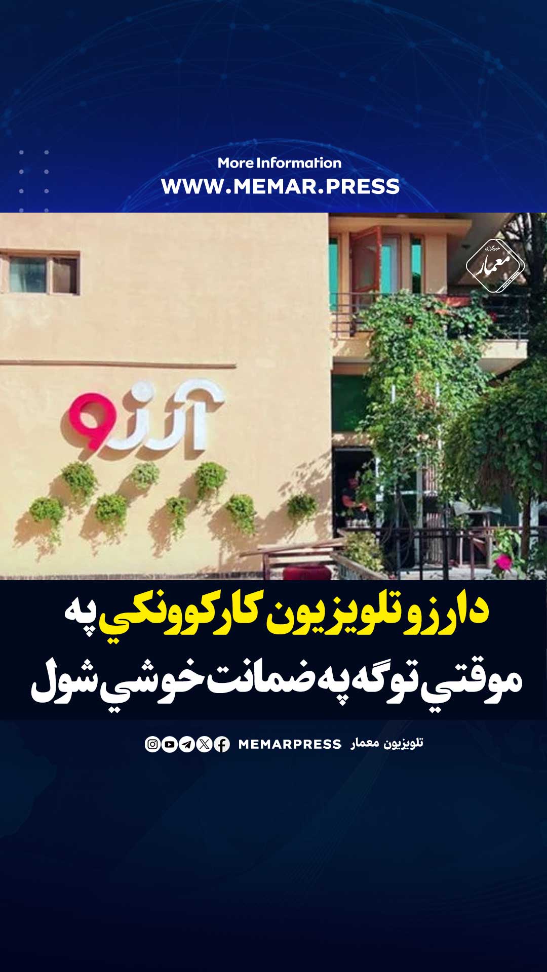 د ارزو تلویزیون کارکوونکي په موقتي توګه په ضمانت خوشي شول 60 لنډ لینک: https://memar.press/?p=113998 ۱۰ میاشتی مخکی د خبر شمیره 113998 کې خپور شو 6:30 ب.ظ Facebook Twitter WhatsApp Telegram Email اړونده منځپانګه طالبان سفیر جدید خود را به اندونزی معرفی کرد 20 حمل 1404 آلمان برنامه پذیرش پناهجویان از طریق سازمان ملل را متوقف کرد 20 حمل 1404 ایران ته د افغانانو په غیرقانوني ننوتلو کې ۵۰٪ کمښت راغلی 18 حمل 1404 ت البانو د ښځو د غږونو خپرول په بشپړ ډول منع کړل 29 حوت 1403