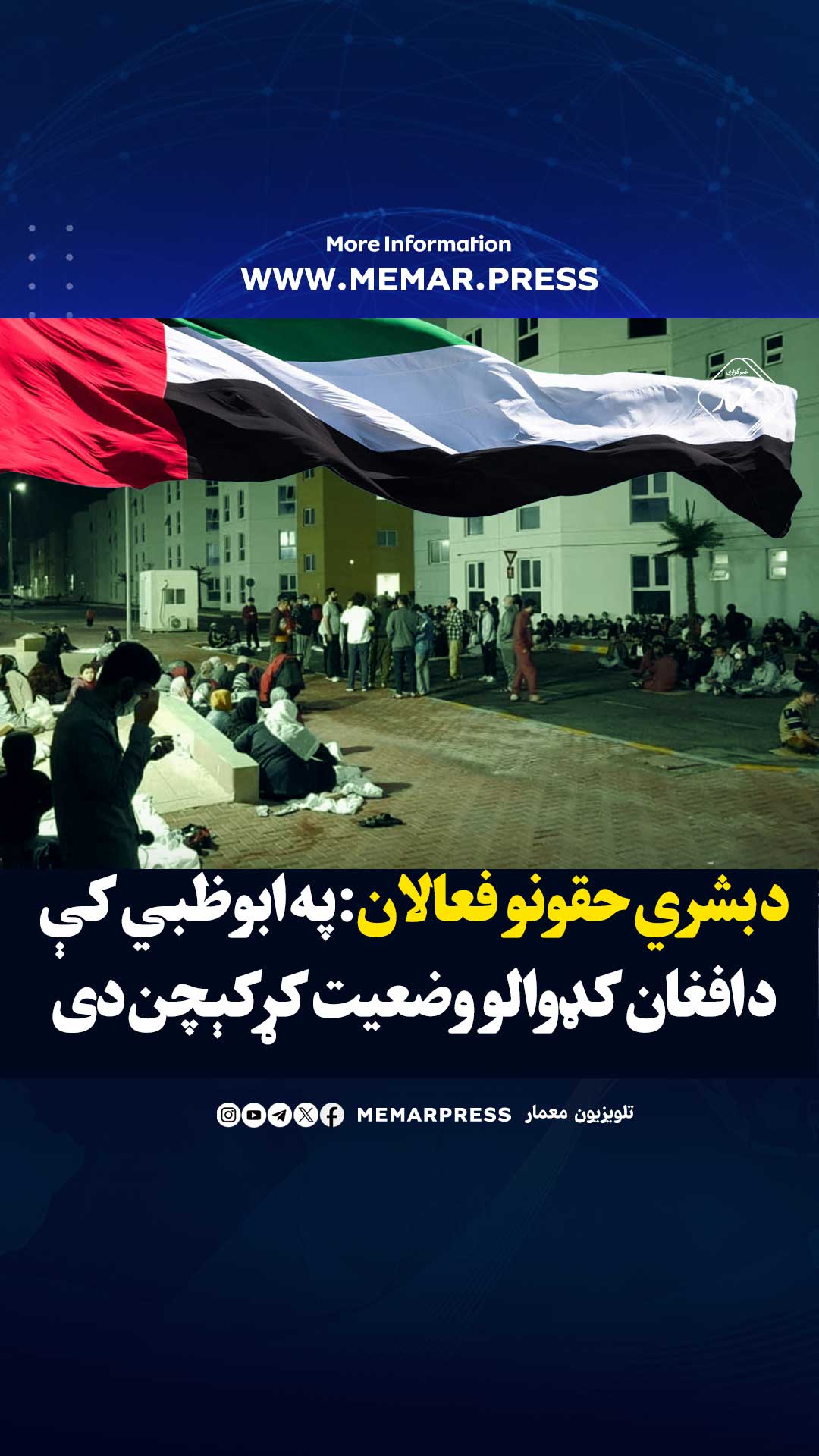 د بشري حقونو فعالان په ابوظبي کې د افغان کډوالو وضعیت کړکېچن دی 48 لنډ لینک: https://memar.press/?p=113030 ۱۱ میاشتی مخکی د خبر شمیره 113030 کې خپور شو 8:22 ب.ظ Facebook Twitter WhatsApp Telegram Email اړونده منځپانګه طالبان سفیر جدید خود را به اندونزی معرفی کرد 20 حمل 1404 آلمان برنامه پذیرش پناهجویان از طریق سازمان ملل را متوقف کرد 20 حمل 1404 ایران ته د افغانانو په غیرقانوني ننوتلو کې ۵۰٪ کمښت راغلی 18 حمل 1404 ت البانو د ښځو د غږونو خپرول په بشپړ ډول منع کړل 29 حوت 1403